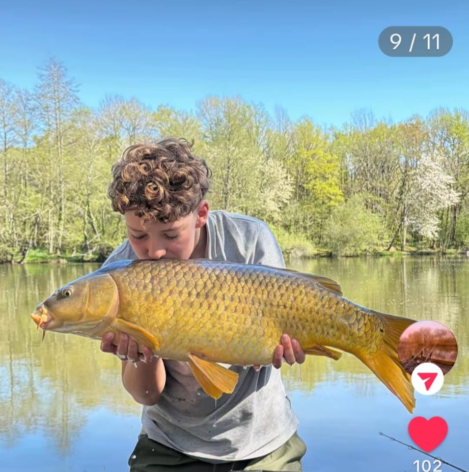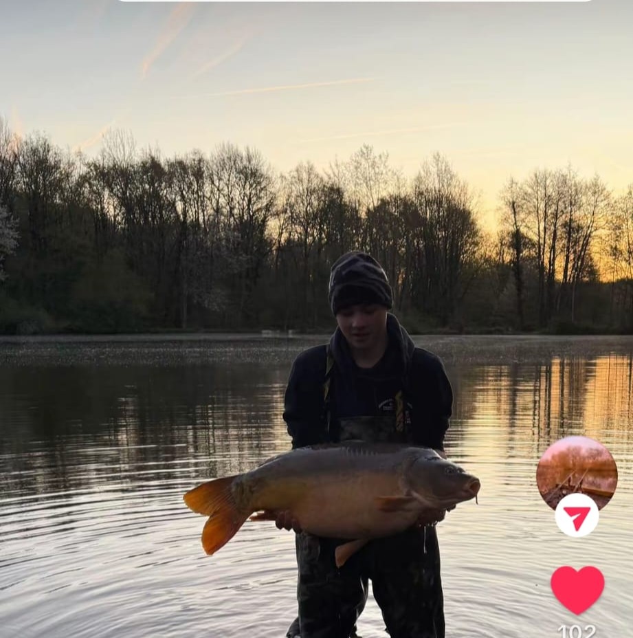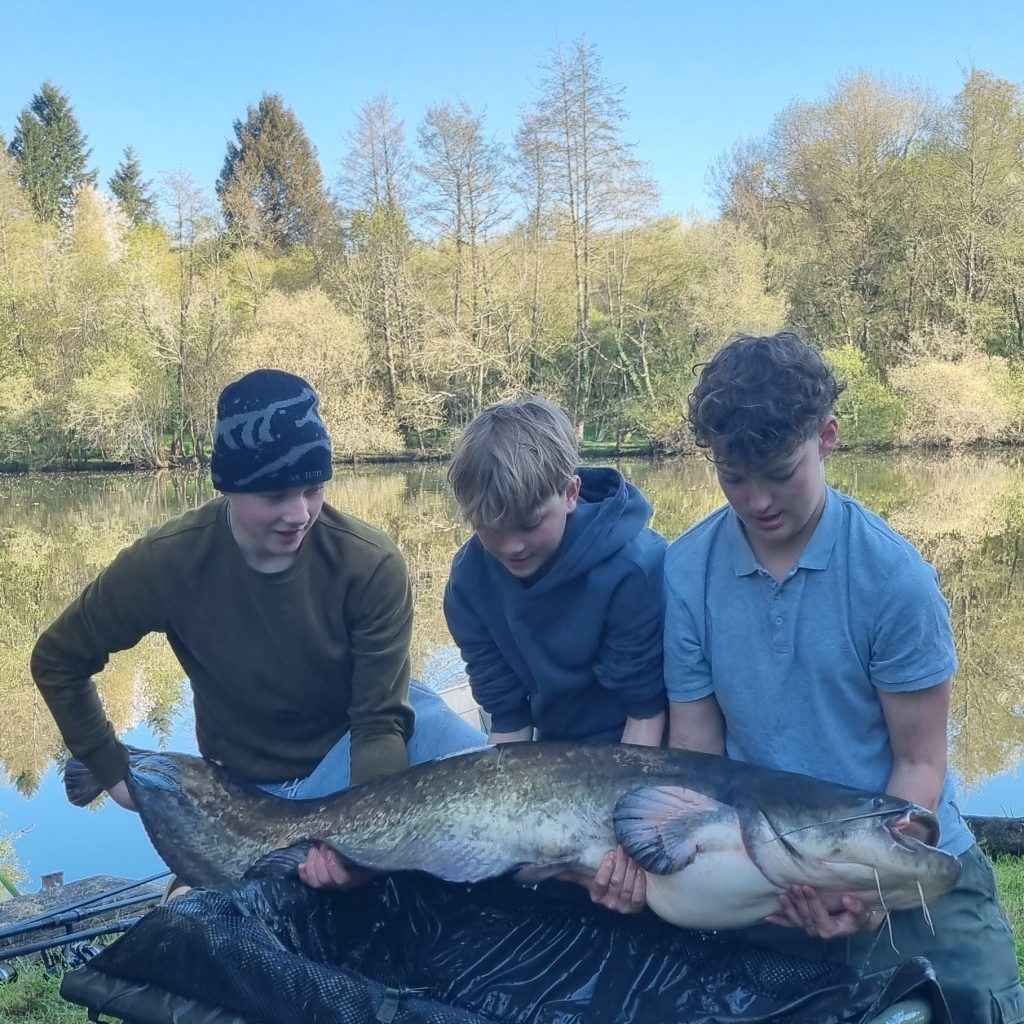 We had been sat chatting to the guests on Lac Lucie on Friday evening when Nigel wandered down to the shallow end of Lac Lucie to see if there were any signs of spawning on there with water temperatures up to 19°C. He was gone ages and when Jo went to see if she could find him he was on the house swim on Kingfisher helping bring in a 60lb catfish that Rupert had struck into. What he hadn’t realised at first was the the boys were doing a TikTok live video at the same time and had a couple of thousand people watching them. He may go viral again yet!