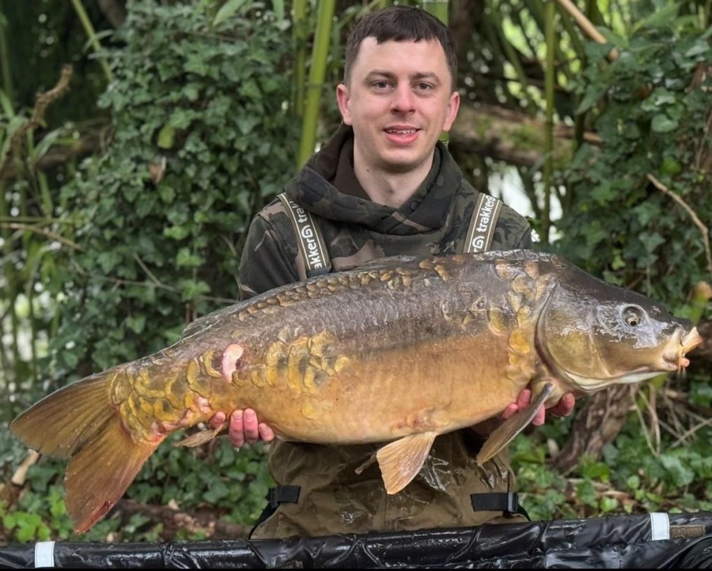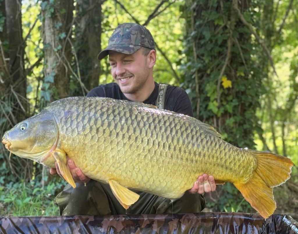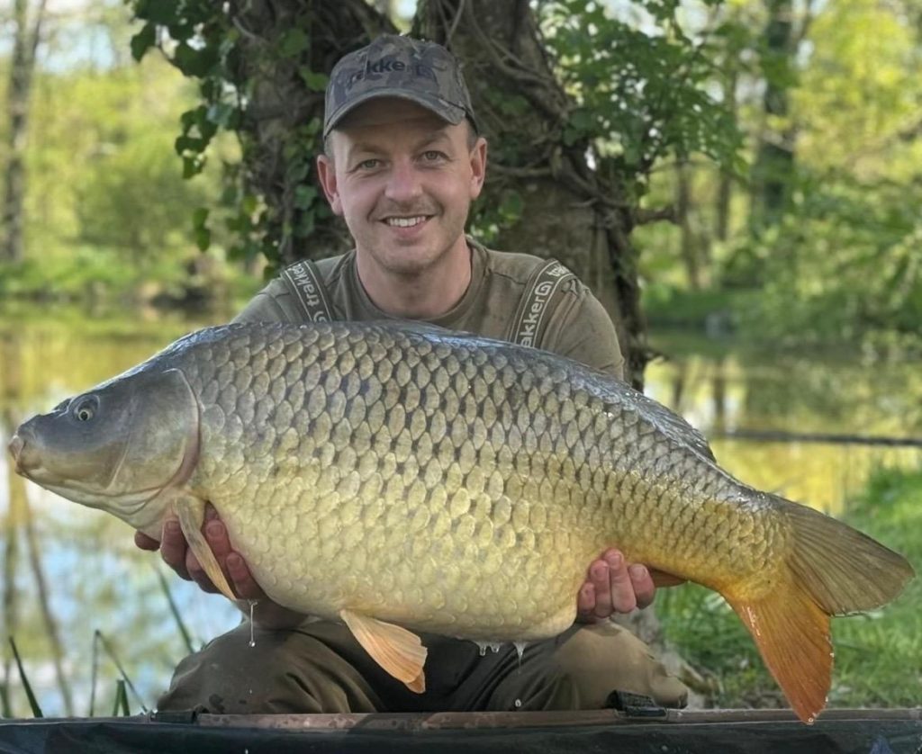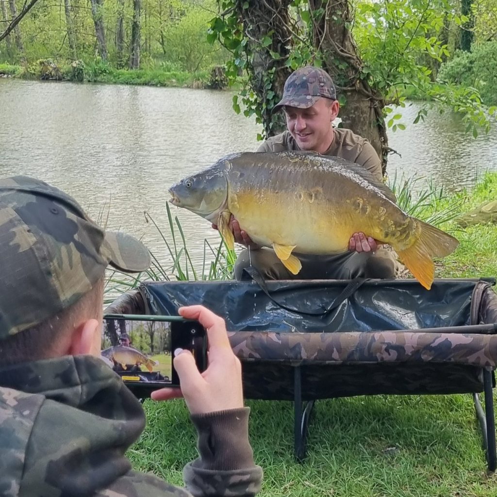 Richard finally landed his first carp after tea on Thursday, a 38lb common after spending the day on Lac Lucie with Will and Chris had another at 34lb on Thursday night on Kingfisher.