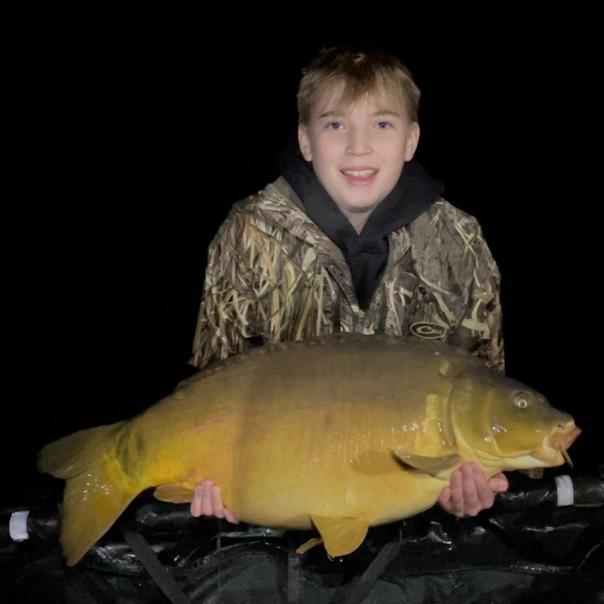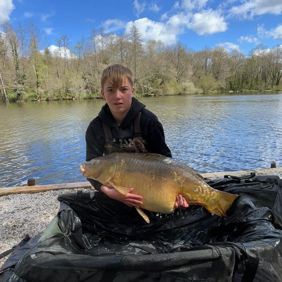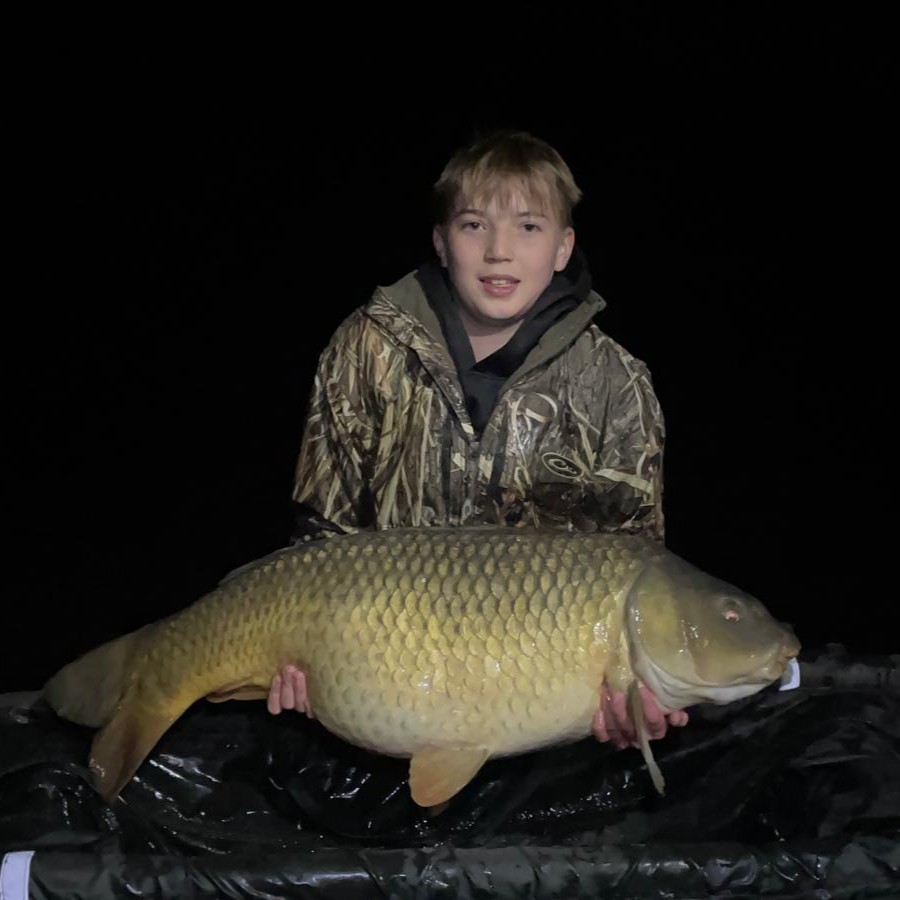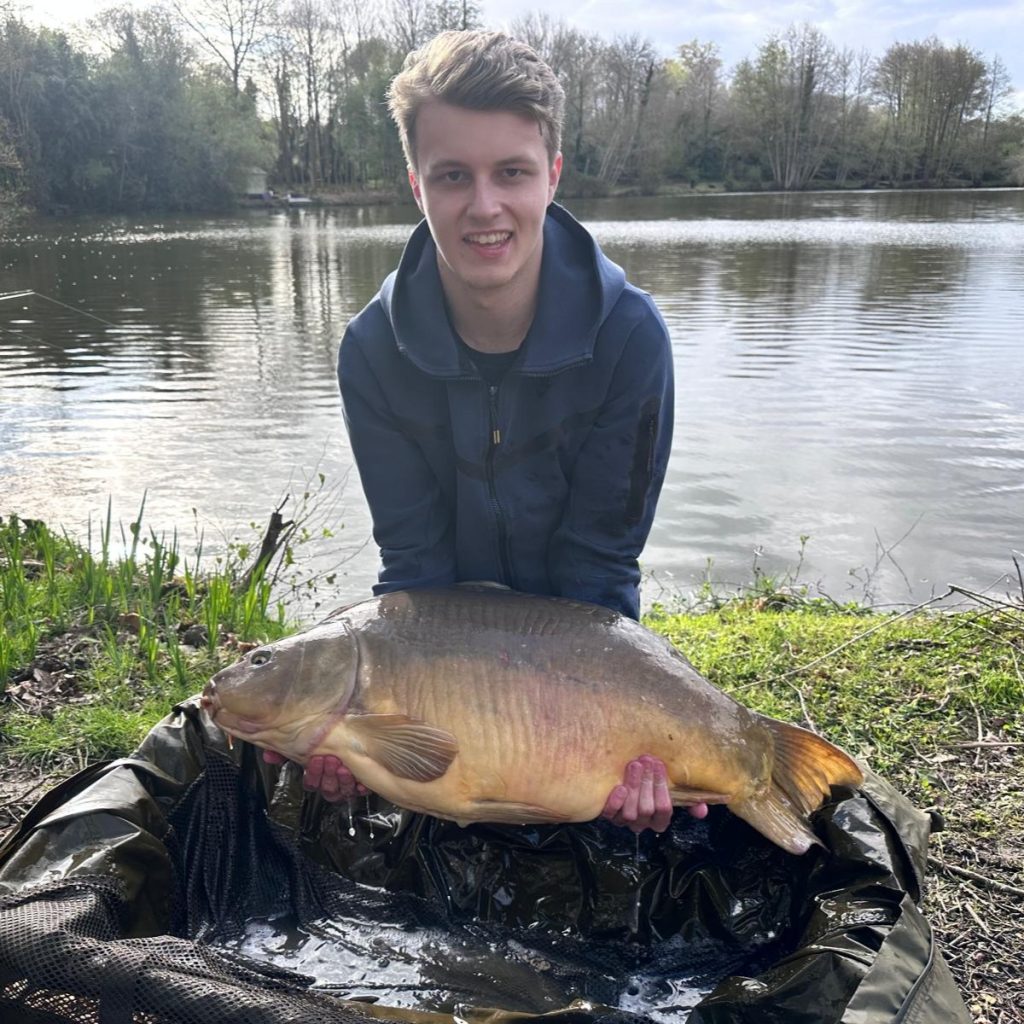 Michael is Thomas and Oliver’s cousin and this was his 3rd trip to Kingfisher lake, usually ending up in swim 3 but this time setting up on the dam wall with Oliver. He started the week well with a 38lb mirror on the Saturday evening.