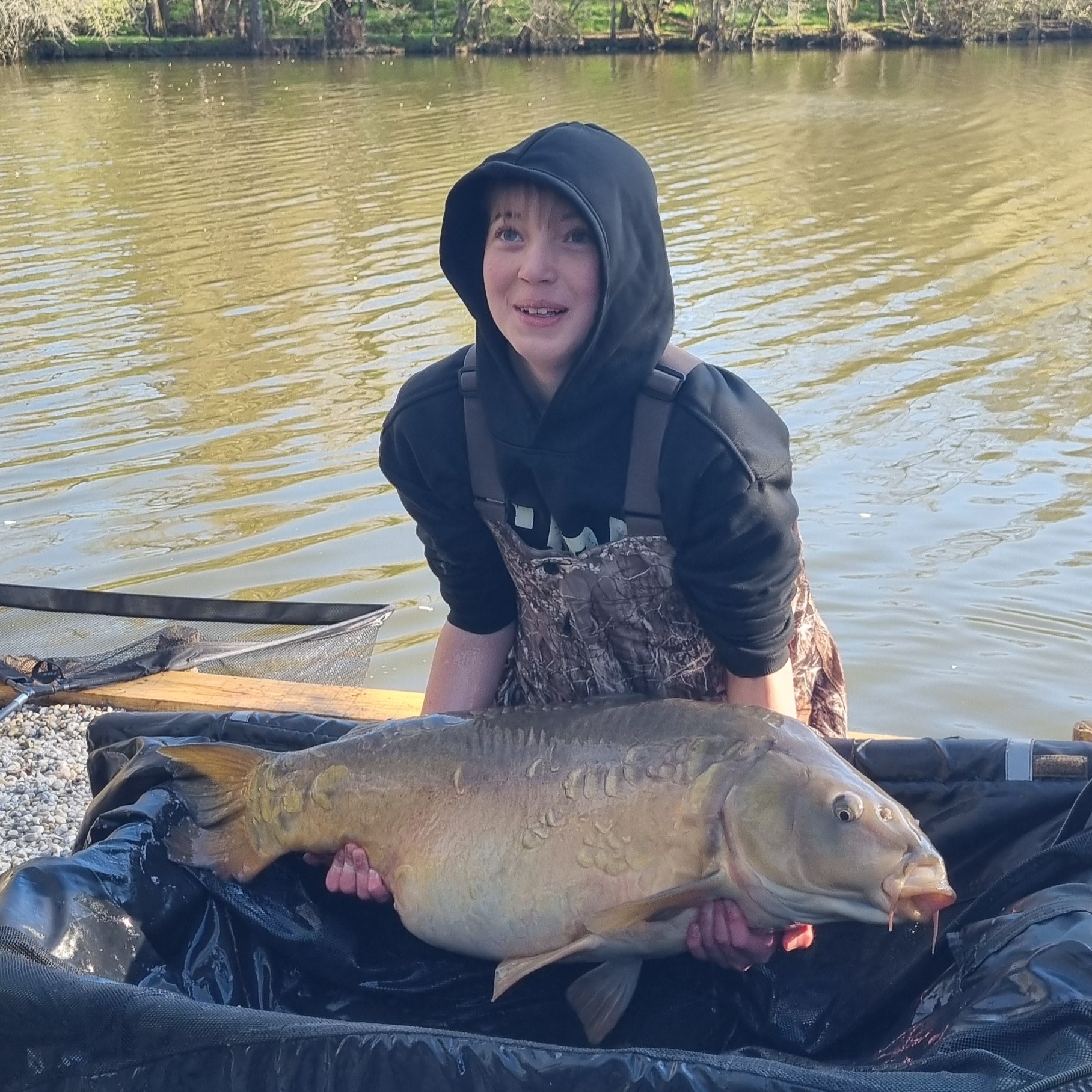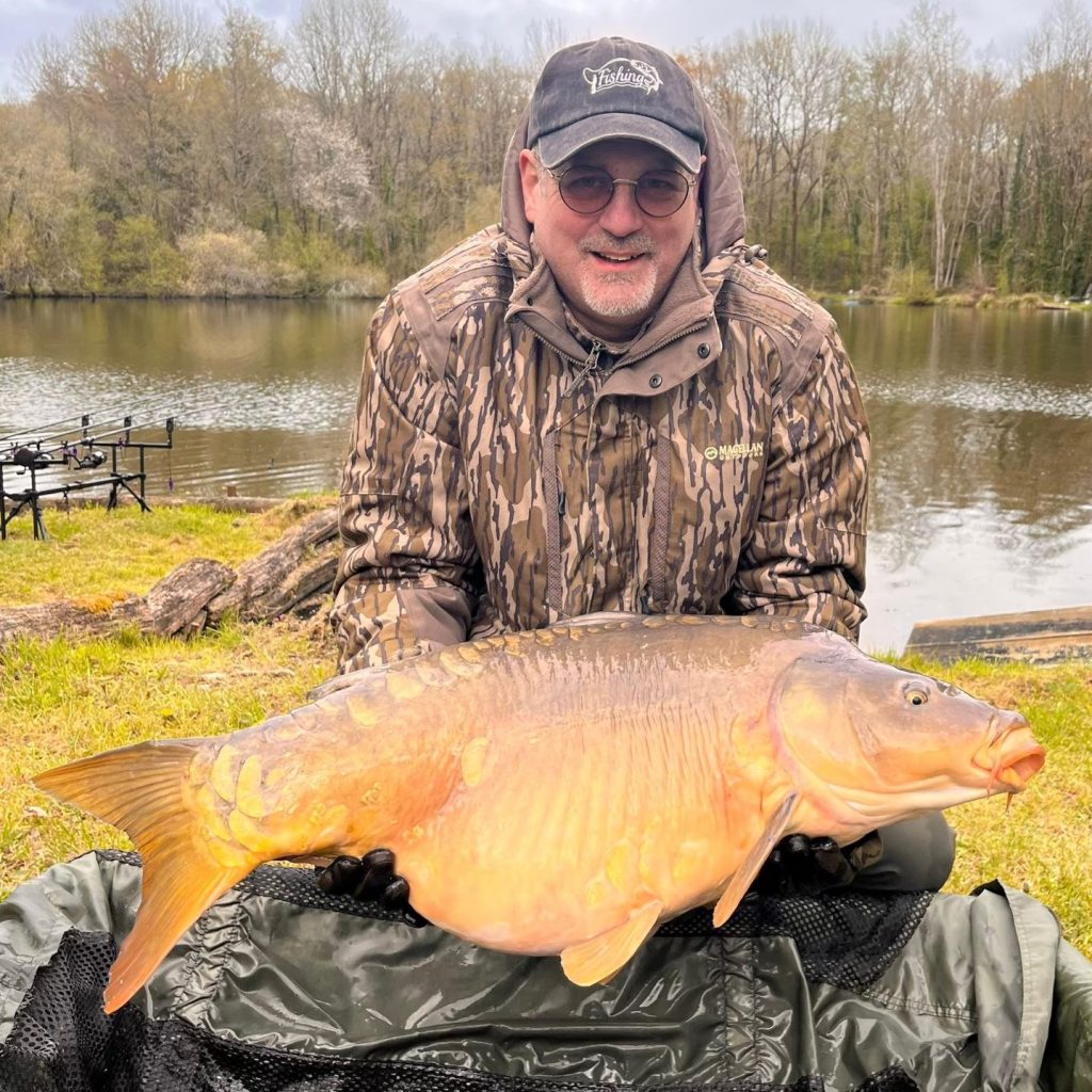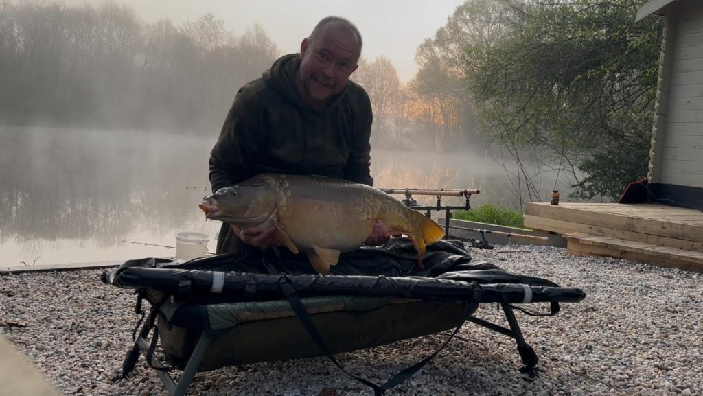Michael is Thomas and Oliver’s cousin and this was his 3rd trip to Kingfisher lake, usually ending up in swim 3 but this time setting up on the dam wall with Oliver. He started the week well with a 38lb mirror on the Saturday evening.