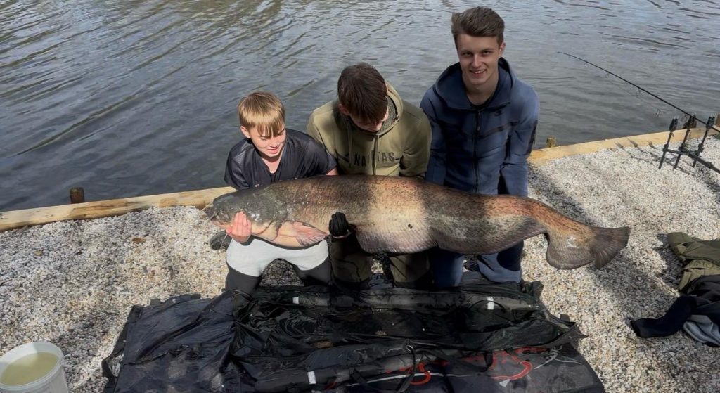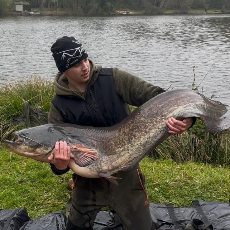 It was Wednesday afternoon before his patience paid off. With everyone around him he managed to play the catfish and keep it on his line for a good 45 minutes, getting it right to the net. But we all know they are tricky to get into the net when they are big and between them the fish kept on sliding out. Determined he was going to land it, brave Oliver got into the water, even though it is only April and still very cold and got the cat onto the bank. Soaking wet and freezing cold he was still jubilant and was thrilled that it was 78lb, 2lb heavier than his brothers and a new PB for him too.