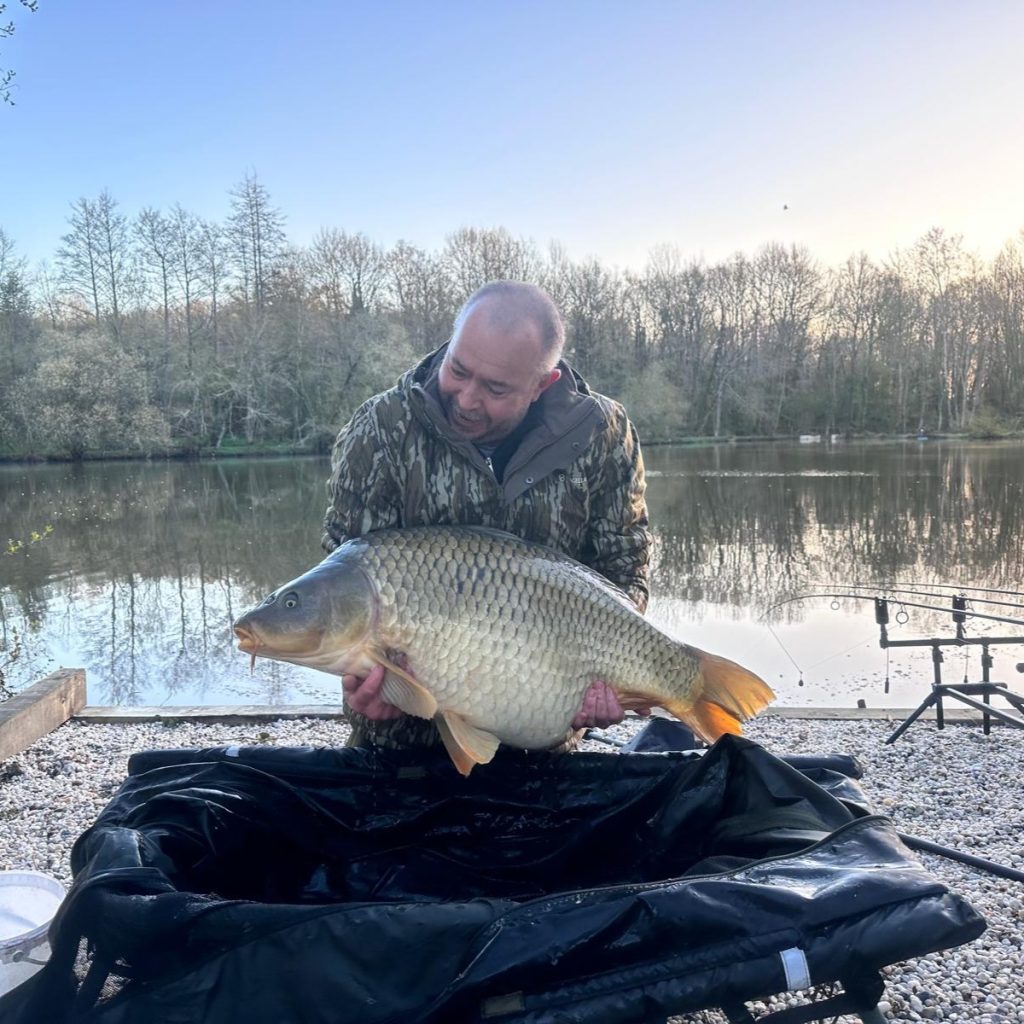 Maybe it is the swim that is always slow to switch on, rather than Paul as it was Dave who was the last to land a fish this week, having to wait until Tuesday before one was on the bank. But whilst most of the others will all fish 24/7 given the chance Dave was a bit more laid back about it all, enjoying the peace and quiet and being away form everyday life as much as the fishing. He was also the one sweeping the chalet out most days when we went round there so he did have some other responsibilities also! He ended the week with 3 or 4 carp he thinks, including a 33lb mirror and these are the photos we have.