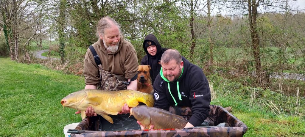 Maisie and Nigel were down by the lake on Wednesday when Paul had a double take – two mirrors weighing 28lb and 32lb. As always Maisie managed to get in the photo – but does not look impressed that no one was throwing the ball for her.