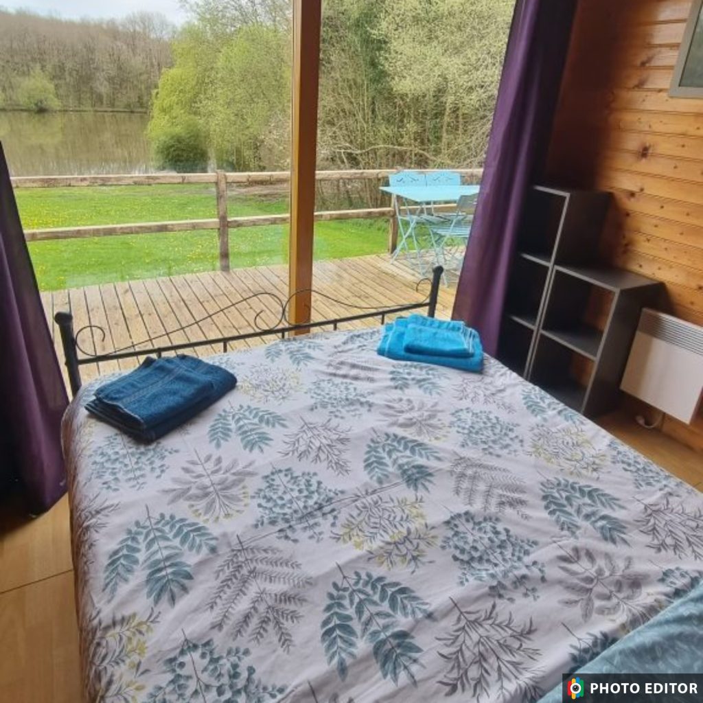 Included in the booking is the use of a fully equipped chalet which has a stunning view of the lake from just up the bank.